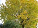 園内中央の大きなイチョウが緑から黄色に色づく小田原フラワーガーデン。園内は秋のバラが咲き誇り...