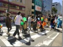 市民まつりのパレードで、ベビーカー行進がありました。風船を付けたベビーカーときぐるみのパレー...